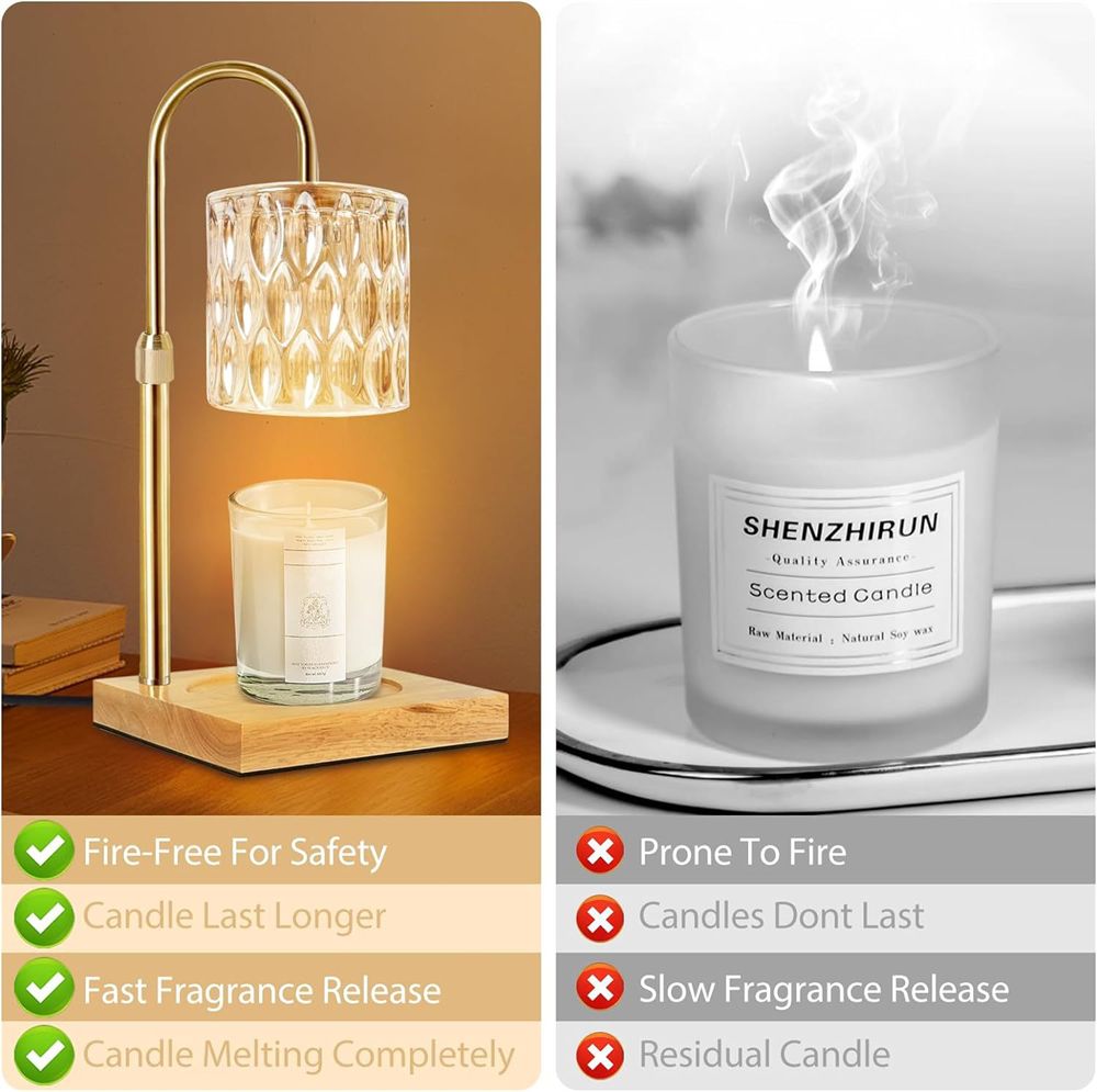 Suitable for Candles of various sizes:The wax warmer with wooden base and height adjustment compatible with all candles sizes. Height between base and candle lamp head is 6 inches.