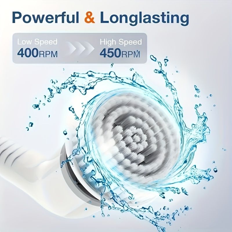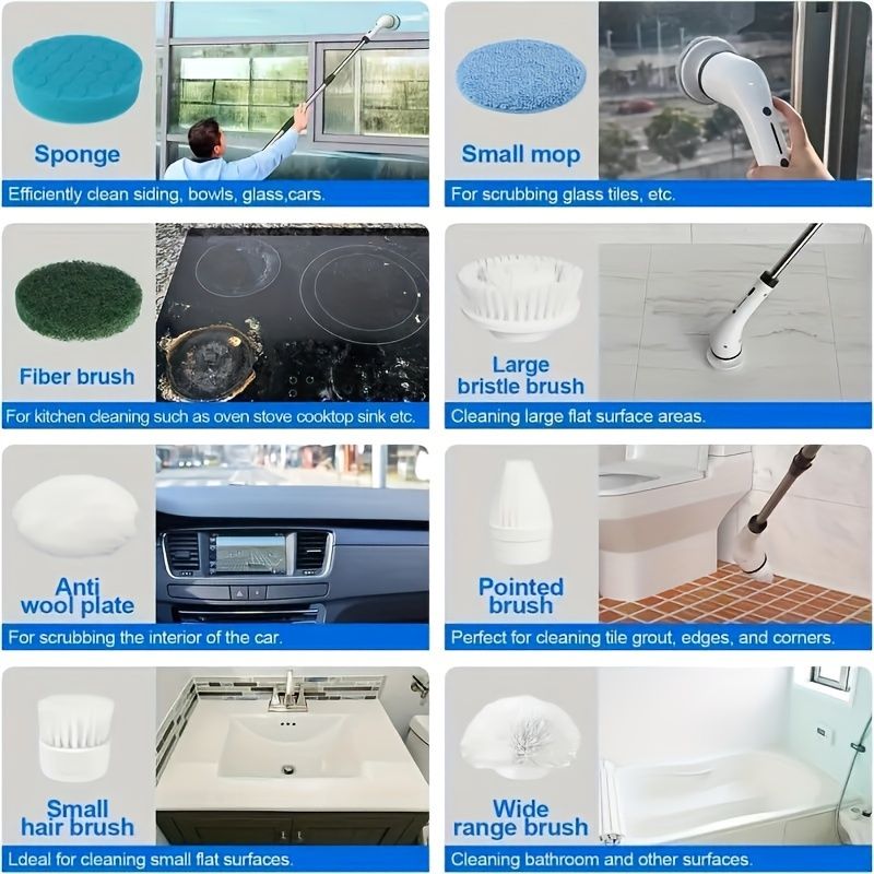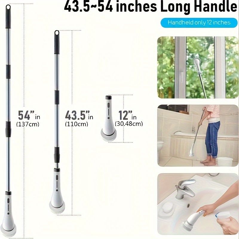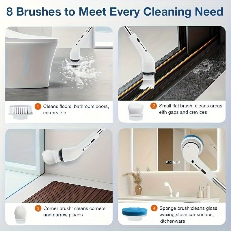 Electric Cleaning Brush, Replaceable 8 Brush Heads and Adjustable Extended Handle, 2 Adjustable Speeds, Rechargeable Shower Brush, 360 Degree Brush, USB-C Charging Cable