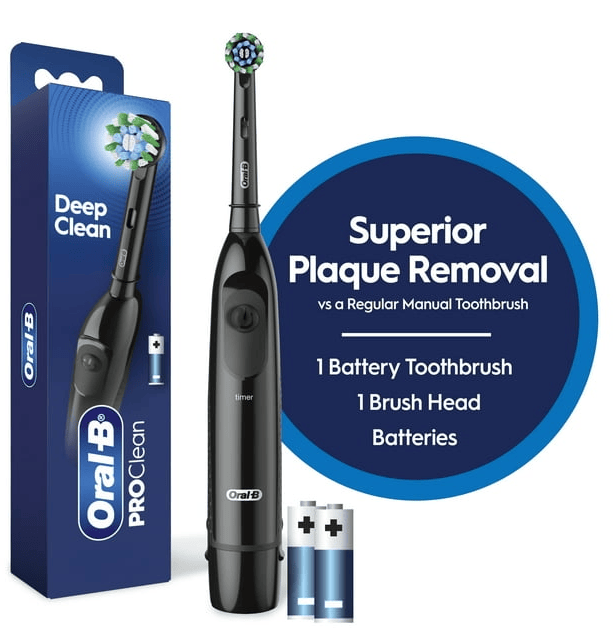 Oral-B ProClean CrossAction Battery Powered Electric Toothbrush, Black – For Adults & Children 3+