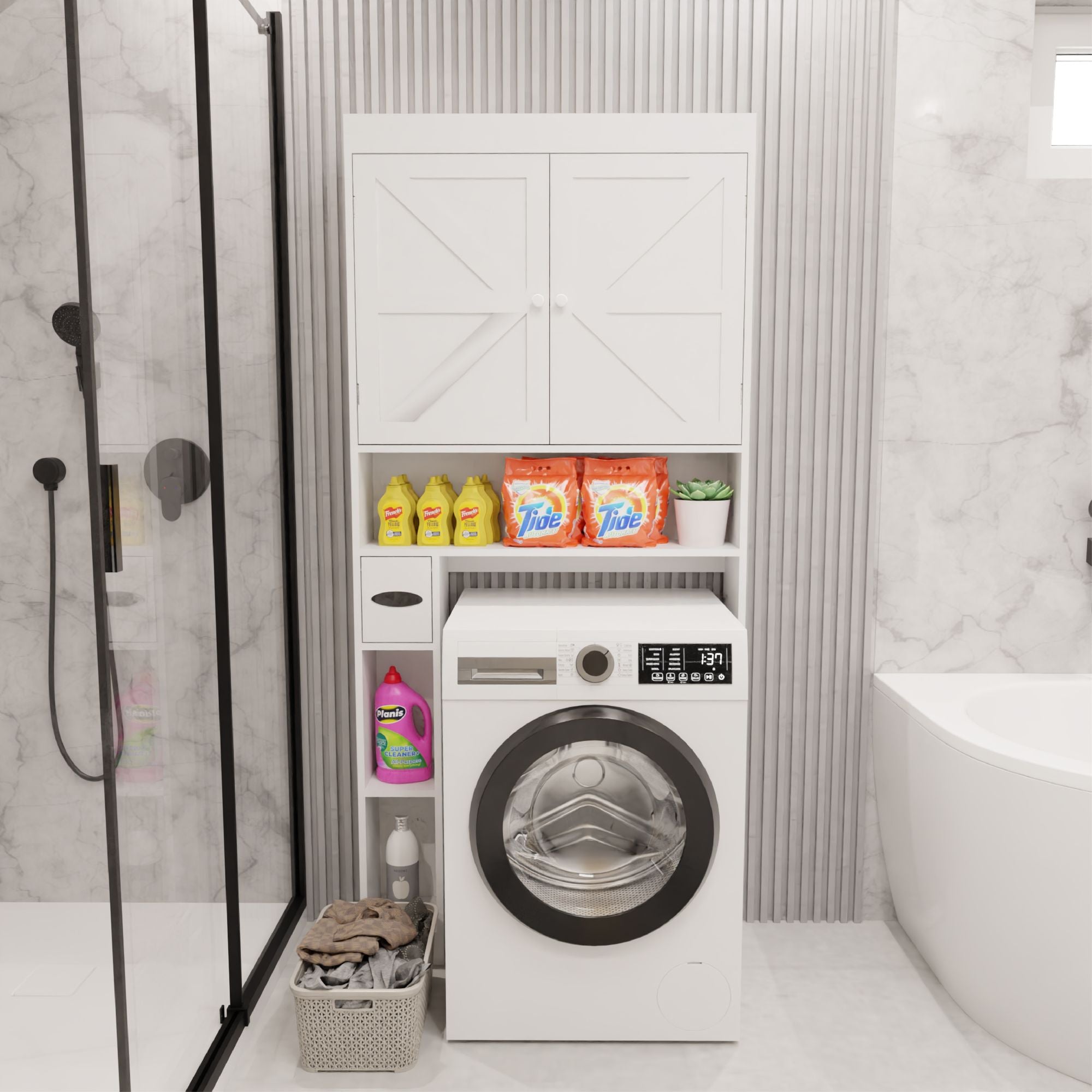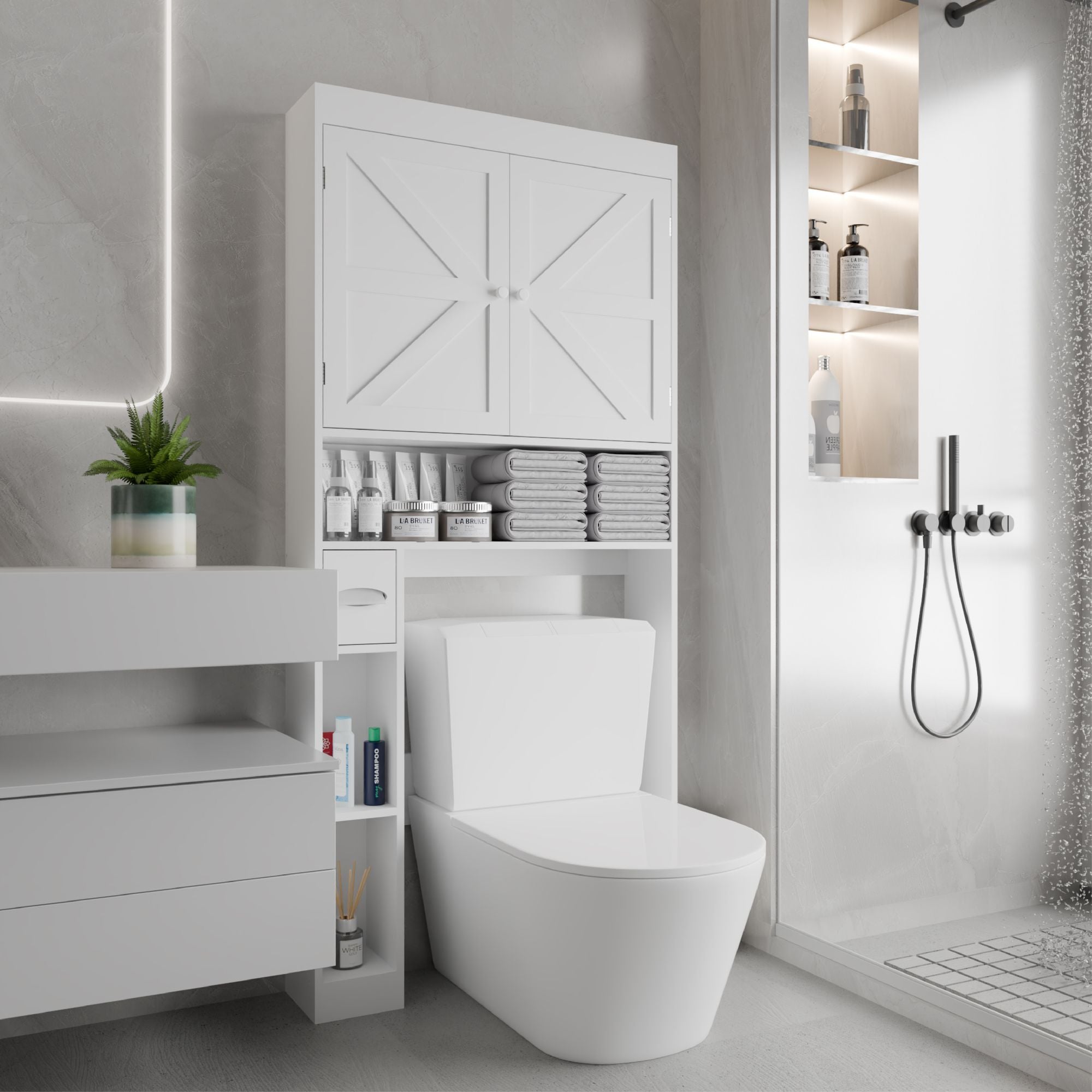 Over-The-Toilet Storage Cabinet with 2 Doors, Home Space-Saving Toilet Rack, Farmhouse Style for Bathroom, Restroom, Laundry