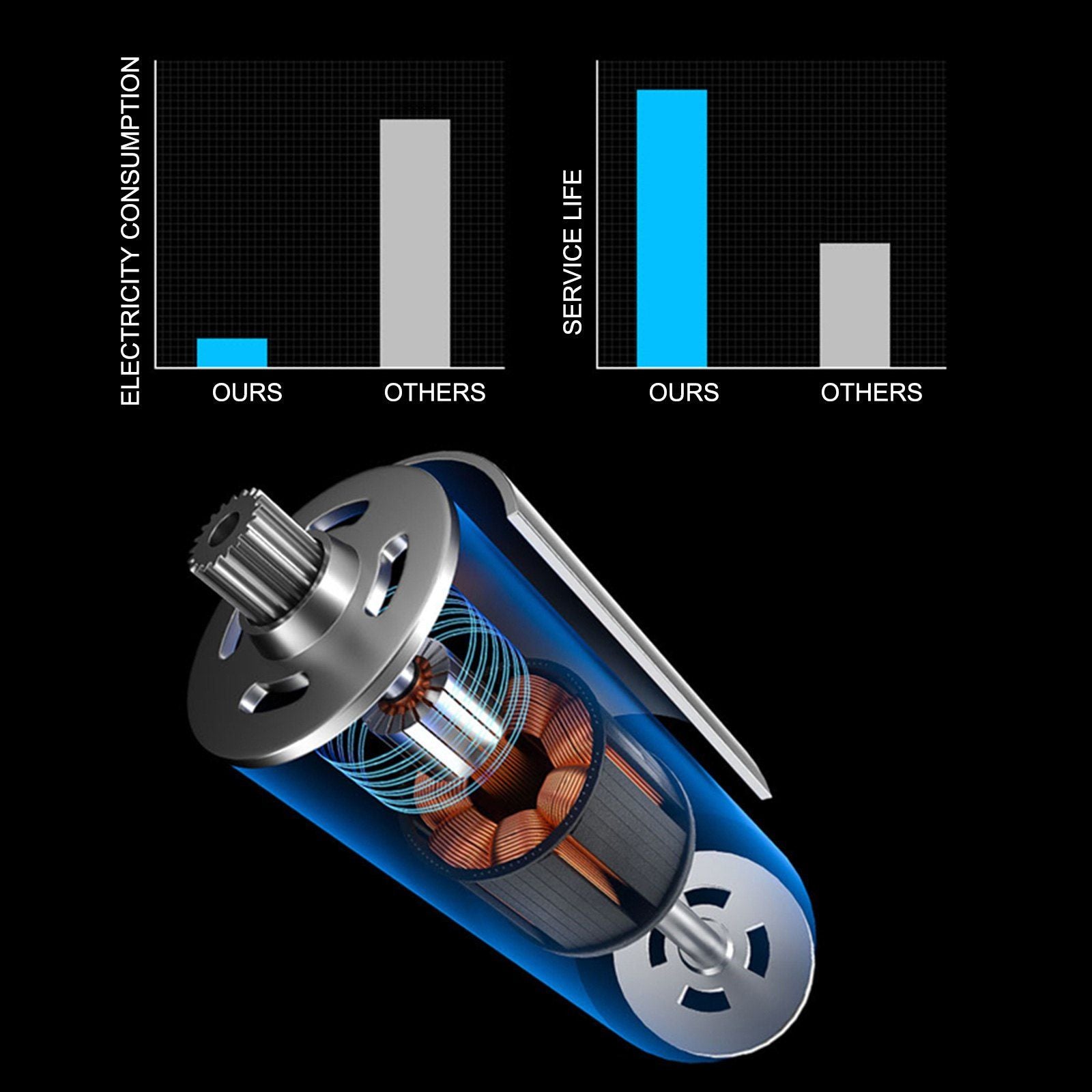 [POWERFUL MOTOR]- The upgraded & energy-saving brushless motor improves the service life up to thousands of hours. Take advantage of frequency conversion speed to keep the stable running of the hologram display fan.
