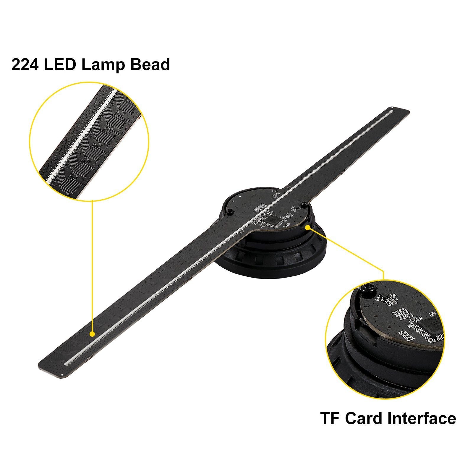 [EYE-CATCHING 3D EFFECT]- The 3d hologram fan, made of 224 professional HD LED lamp beads, makes stunning light and incredible looking images. The visual realistic holographic effect lets you feel it completely appears in the air and helps you better attract customers and become an eye-catching being.